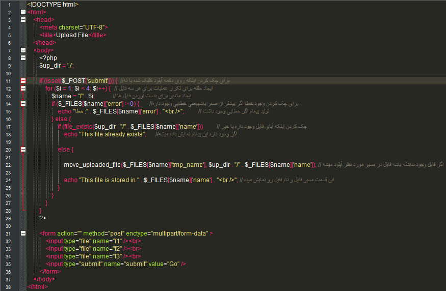برای آپلود همزمان چند فایل میتونیم از حلقه ها استفاده کنیم تا امکان ذخیره مشخصات چند فایل رو همزمان داشته باشیم .